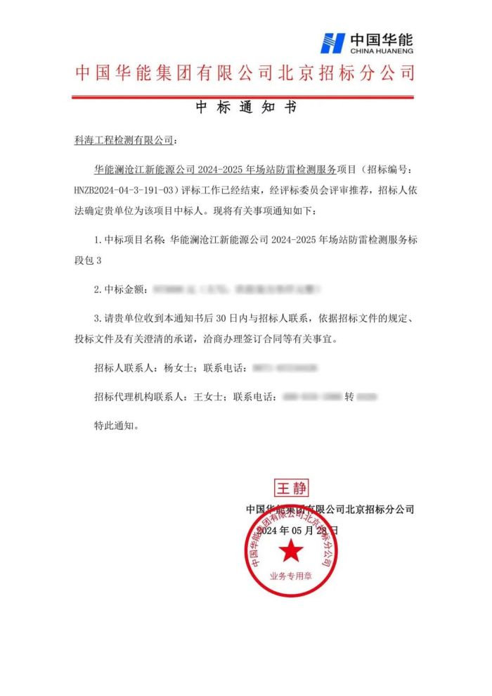 追風趕月莫停留,平蕪盡處是春山。近日,公司經(jīng)營捷報頻傳,喜訊連連,成功中標“華能瀾滄江新能源公司防雷檢測”、“三峽能源云南分公司防雷檢測采購”兩個項目,實力再獲市場認可。